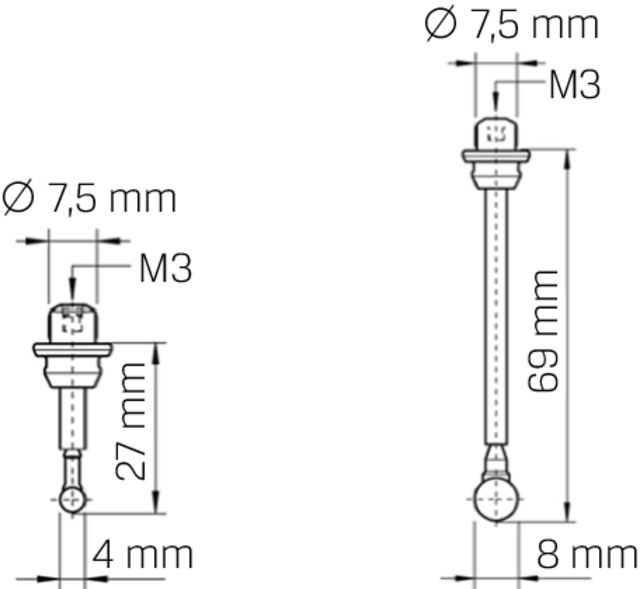 - Zamenljivo tipalo: krogla premera Ø 8 mm z nastavljivo koncentričnostjo