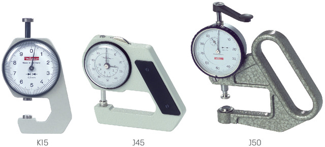 - zum Messen der Dicke unterschiedlichster Materialien wie z. B. Leder, Pappe, Papier, Filz, Gummi, Glas, Blech, Folien, Sperrholz und Kunststoffen verwendbar