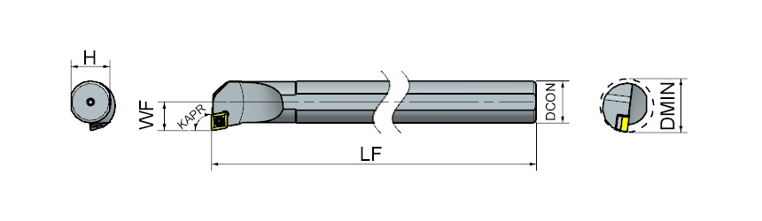 Držalo SCFCR/L je namenjeno notranjemu struženju izvrtin na CNC in klasičnih stružnicah. Uporablja se za vpenjanje CCMT ploščic (C-oblika 80°), ki omogočajo stabilno obdelavo notranjih površin, čelnih robov in prehodov.