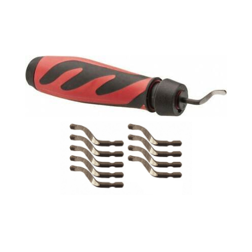 Set vključuje 10 rezil B10, primernih za obdelavo jekla, aluminija, bakra in plastike. Sistem omogoča enostavno menjavo rezil glede na vrsto materiala in obdelave.