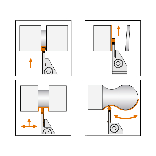 Držalo ATSER/L-D je namenjeno zunanjemu zarezovanju utorov in odrezovanju (parting-off) na CNC in klasičnih stružnicah. Uporablja se z ACD ploščicami za stabilno rezanje pri izdelavi utorov ter ločevanju obdelovancev od materiala, tudi pri večjih premerih.
