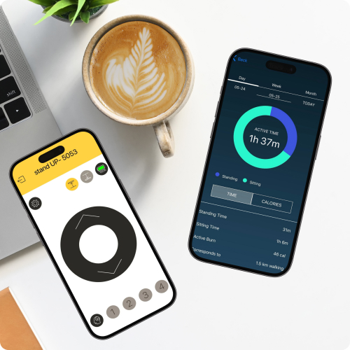 Električna dvižna pisalna miza z ploščo iz bukovega lesa, svetlo siva