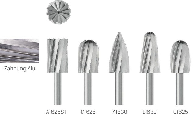 - zur Bearbeitung von AIu-Legierungen, Messing, Kupfer, Zink, sowie CFK und GFK