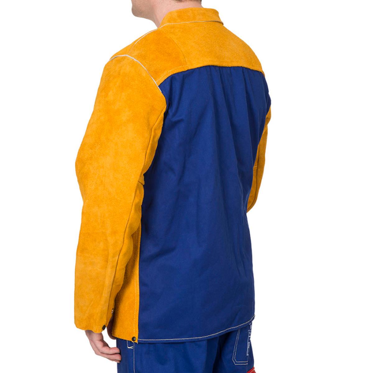 Jakna ima dodatno ojačan hrbtni del za boljšo zaščito pri delu s hrbtno izpostavljenostjo ter notranji žep za varno shranjevanje manjših predmetov. Izdelek ustreza standardu EN 470-1 CE, kar potrjuje njegovo primernost za varilska dela v industrijskem okolju.