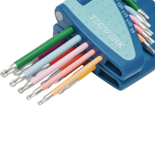 KLJUČ KOTNI v 9-delni gar. TX9-TX45 ,s krogelno glavo, barvni ,TECWERK