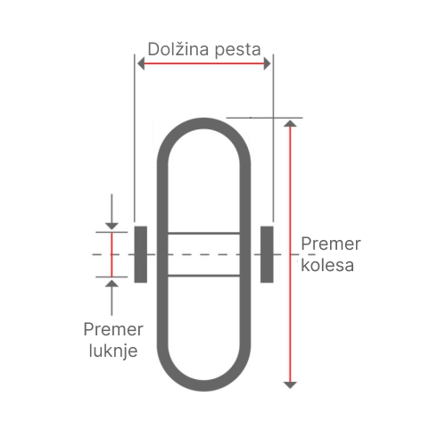 Kolo transportno gibljivo z zavoro, termoplastična guma