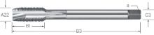 A22 nazivni premer navoja za UNC, UNF, Pg