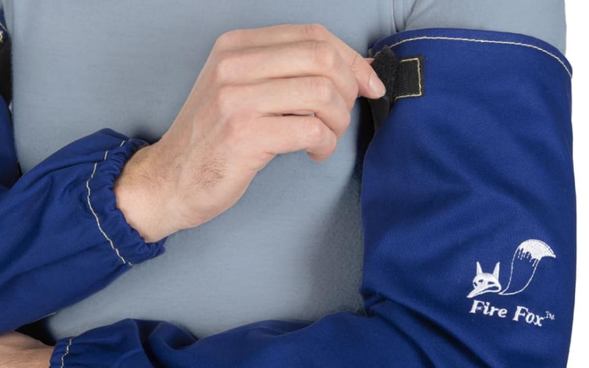 · Fire Fox™, modri bombažni varilni rokavi za zaviranje širjenja ognja