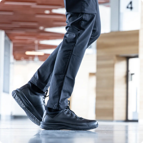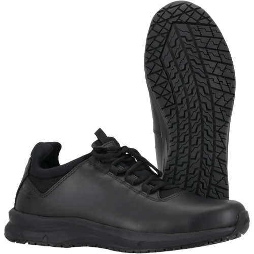 Podplat zagotavlja stabilen oprijem na industrijskih površinah, kar zmanjšuje tveganje zdrsa pri hoji ali delu na gladkih tleh. Nizka zasnova omogoča naravno gibanje stopala, zato so čevlji primerni za uporabnike, ki se veliko gibljejo in potrebujejo udobno delovno obutev skozi celoten delovni dan.