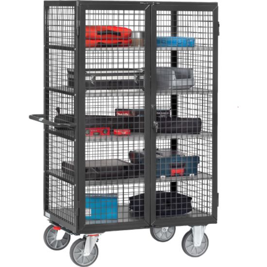 Fetra omara na kolesih iz žične mreže v barvi RAL 7016 (antracitno siva) združuje robustnost, mobilnost in tiho delovanje – popolna rešitev za varno in pregledno shranjevanje v profesionalnih okoljih.