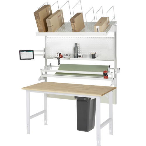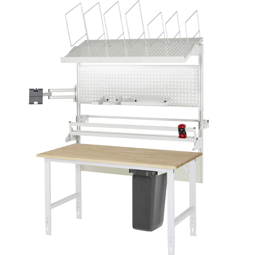 Pakirna miza, nadgradna polica, magazin za kartone, z roko za monitor in rezalno