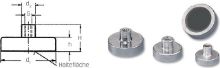 Mit Gewindebuchse, Einsatztemperatur bis 200 °C. Bei OXIT-Flachgreifern aus keramischem Dauermagnetwerkstoff OXIT 380 sorgt ein Topf aus Weicheisen für die Abschirmung. Oberfläche verzinkt.