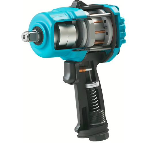 Opremljen je z pogonskim kvadratom 1/2", kompaktnim in robustnim ohišjem ter ergonomskim ročajem, ki zmanjšuje utrujenost med dolgotrajnim delom. Njegova udarna tehnologija Twin-Turbo omogoča večjo moč pri nižji porabi zraka.