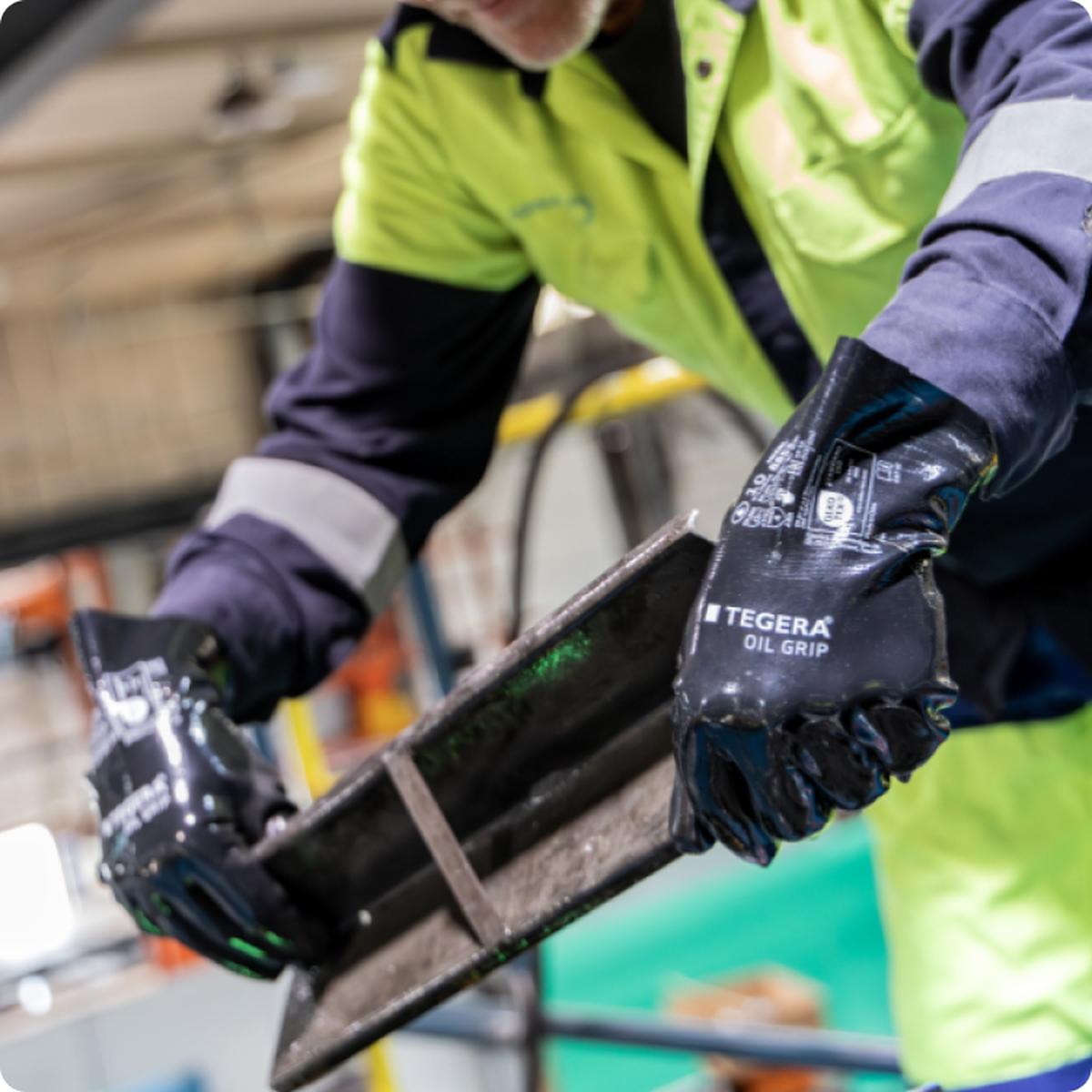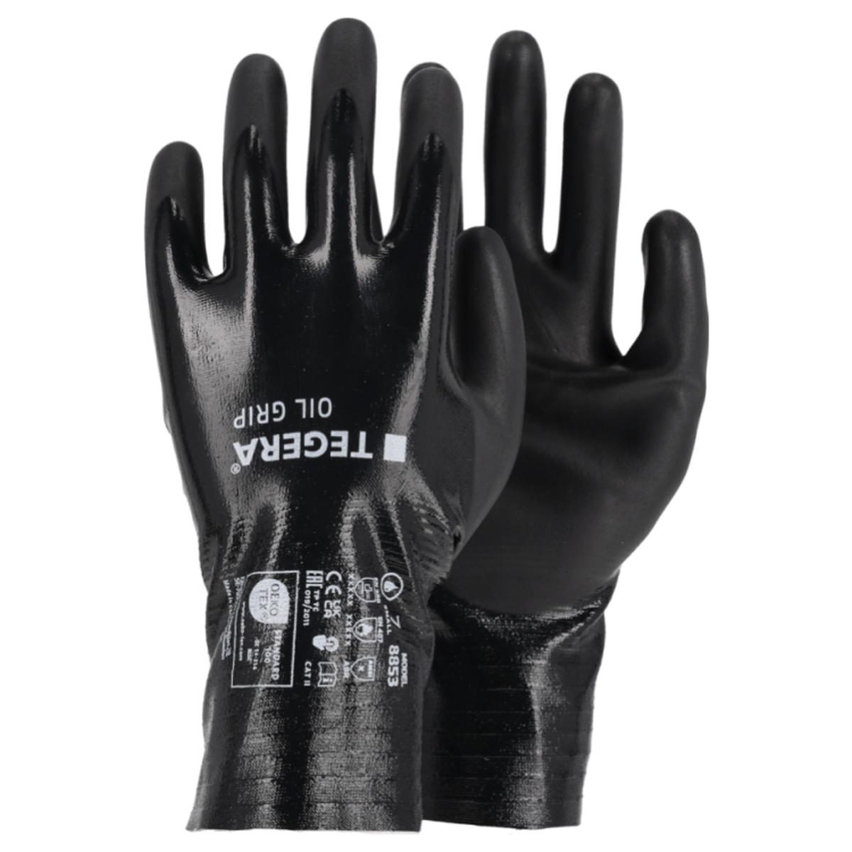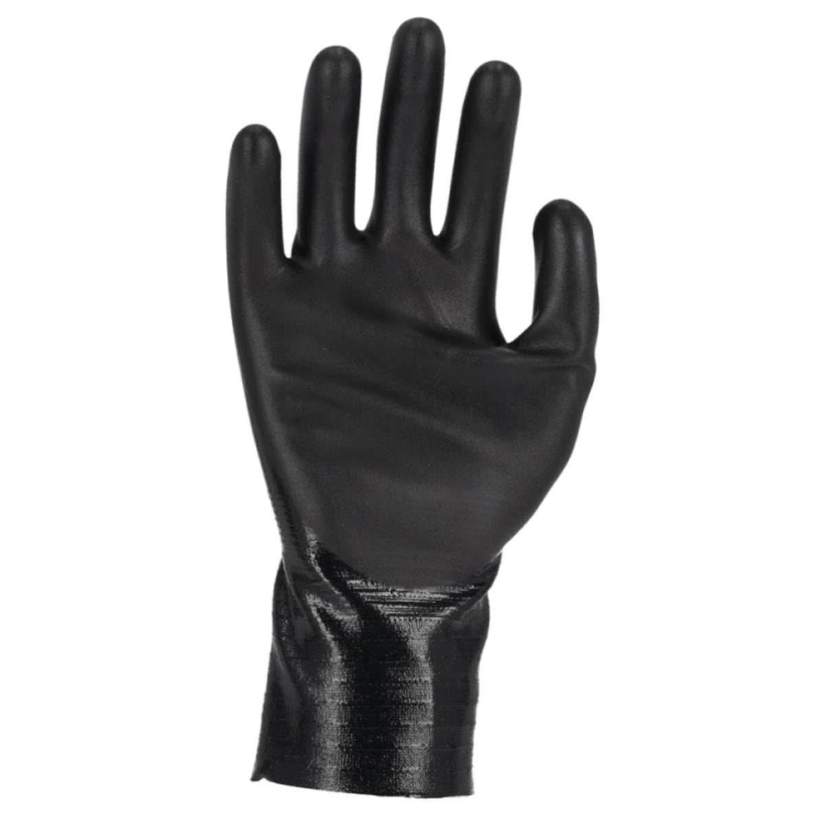 - rokavice zagotavljajo odličen oprijem v oljnatih okoljih- v celoti premazane, s trojnim premazom iz nitrilne pene in z dolgo manšeto- kontaktna toplota do 100°C- primerne za zaslon na dotik