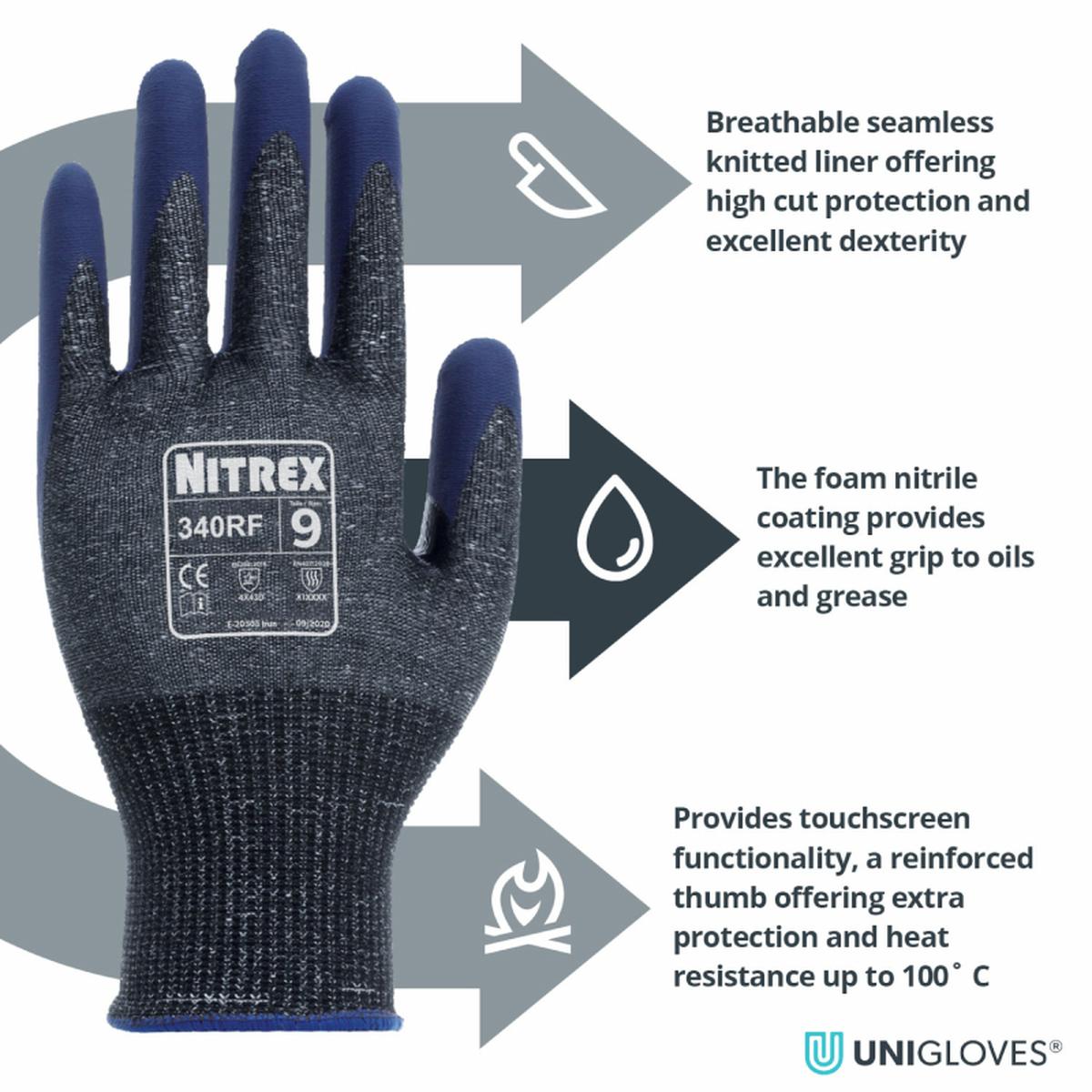 NITREX 340RF,VEL.10,ROKAVICE PROTIUREZNE CUT D S PREVLEKO IZ NITRILNE PENE, SIVO