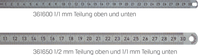 Stahlmaßstab BMI, aus rostfreiem Stahl Form B Teilung mm/ 1/2 mm