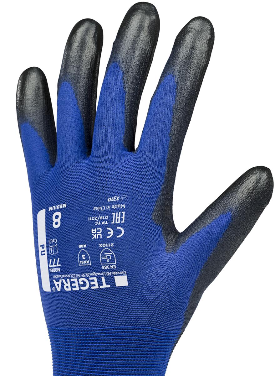 Naša najtanjša delovna rokavica za fine naloge. Izjemna pripravnost in otipljivost zahvaljujoč tehnologiji izjemno tankega 18G-pletenja. Tanek PU-premaz na dlani zagotavlja boljši oprijem in zaščito pred odrgninami. Temno modra in črna barva pomagata prikriti umazanijo in podaljšata uporabnost. Vsak par je opremljen s kavljem, ki omogoča enostaven prikaz.