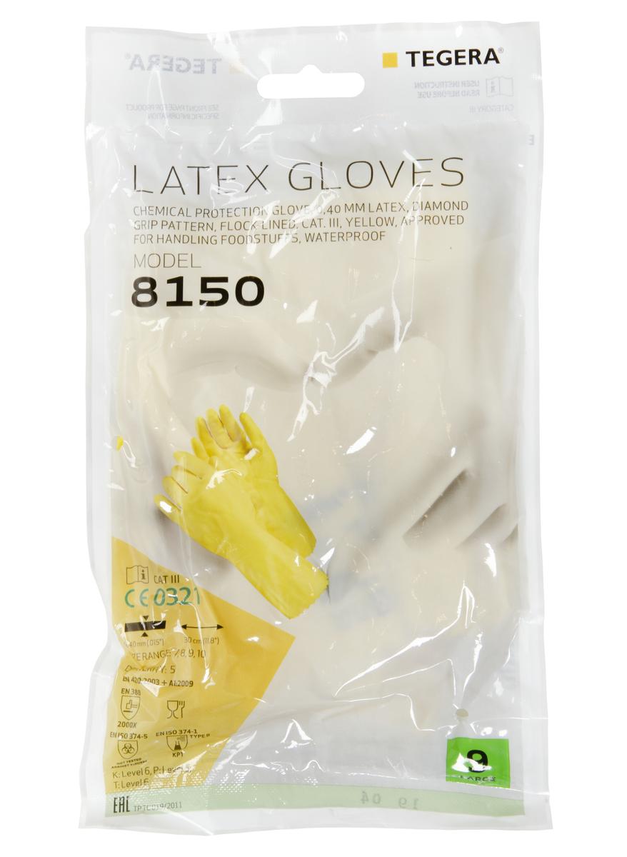8150, VEL.8, ROKAVICE IZ NARAVNEGA LATEKSA, KLASIČNE, VODOTESNE, RUMENE, TEGERA