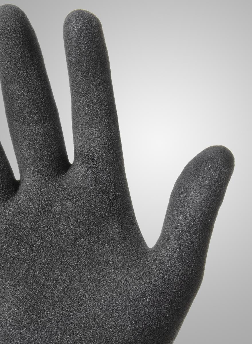 Rokavice so v celoti premazane z zaščitnim slojem, dlan pa je dodatno obdelana z nitrilno mikropeno, ki omogoča zanesljiv oprijem tudi na mokrih in spolzkih površinah. Njihova anatomska oblika nudi popolno prileganje in zmanjšuje utrujenost med uporabo.