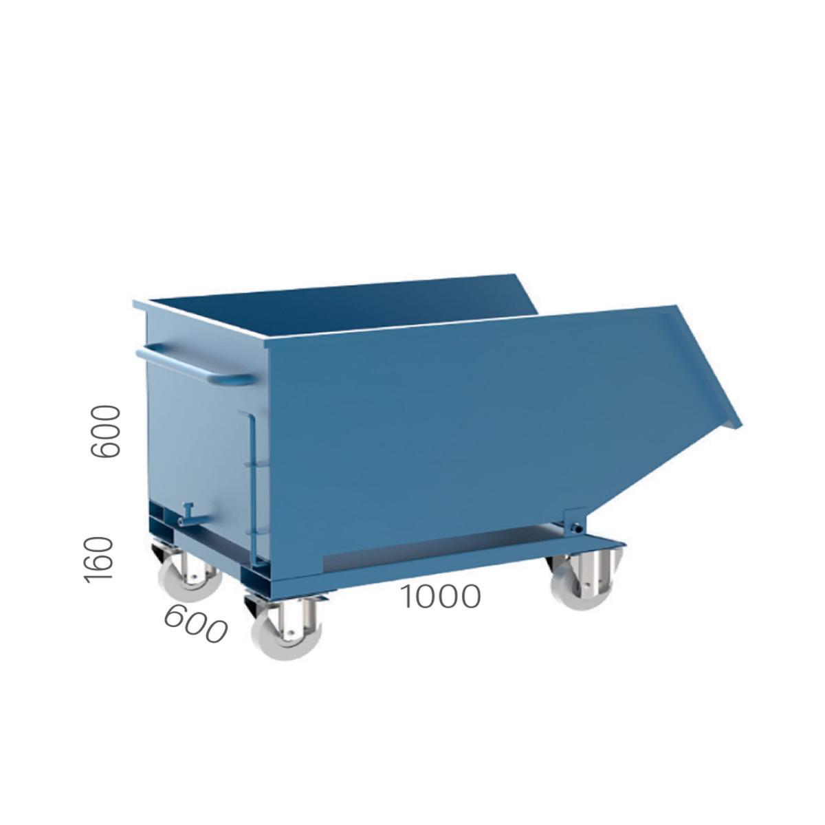 Prekucni zabojnik za ostružke se ponaša z robustno konstrukcijo in je zasnovan za zanesljivo uporabo v industrijskih in delavskih okoljih. Njegova modra barva RAL 5015 je standardna za skladiščne izdelke, ki zagotavljajo vidnost in profesionalen videz.