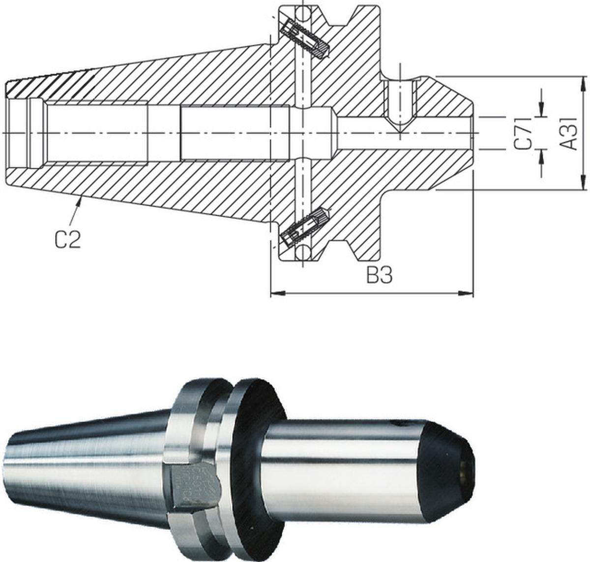 - zum Spannen von Fräsern mit Zylinderschaft und seitlicher Mitnahmefläche nach DIN 1835-B und DIN 6535-HB, ähnlich DIN 6359 mit Steilkegel.